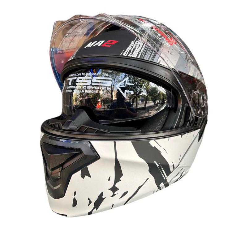 کلاه کاسکت های MA2 یکی از پر فروش ترین کاسکت های چند سال اخیر بوده است . این برند از کیفیت قابل قبولی نزد مشتریانش بهره میبرد . پوسته روی کلاه از جنس ABS است و به خوبی در برابر ضربات و صدمات ناشی از تصادفات از سر و گردن شما محافظت خواهد کرد . رنگ روی کلاه مقاومت بسیار زیادی در برابر اشعه خورشید دارد و اگر شما تا به حال از کاسکت های MA2 استفاده کرده باشید میبینید حتی پس از چند سال استفاده مستمر رنگ روی کلاه از بین نخواهد رفت . یکی از نقاط قوت این مدل تو دوزی و آستر های داخلی آن است که بسیار دوخت ظریف و با کیفیتی دارد و شاید اولین چیزی که بعد از دیدن کلاه خود نمایی میکند همین پدها و پارچه های داخل کلاه است . پد های داخل تماما قابل شست شو و تعویض هستند . ضمنا این مدل دارای پد گردن میباشد که مانع از نفوذ باد به داخل کلاه میشود و کلاه کاملا کیپ خواهد بود (توجه داشته باشید سایز مناسب را از راهنمای سایز موجود انتخاب نمایید و این را در نظر داشته باشید که کلاه حتما کیپ صورت شما باشد و نباید روی سر بازی داشته باشد) .این کلاه دارای سه هواکش در جلو و 2 هواکش در عقب کلاه است و این باعث خواهد شد سر شما در مسافت های طولانی کمتر عرق کند . عینک UV و طلق 100% پلی کربنات ضد خش دید بسیار شفاف را برای شما به همراه خواهد داشت. قابلیت نصب بلوتوث برای کلاه کاملا مهیاست و شما با برداشتن پد های گوش که به صورت دکمه ای به پوسته کلاه متصل هستند میتوانید اسپیکر های بلوتوث را به راحتی در جای خود بچسبانید و سپس پد ها را در جای خود قرار دهید. ضمنا یک کاور پارچه ای مخصوص حمل کلاه نیز به همراه کلاه موجود است.