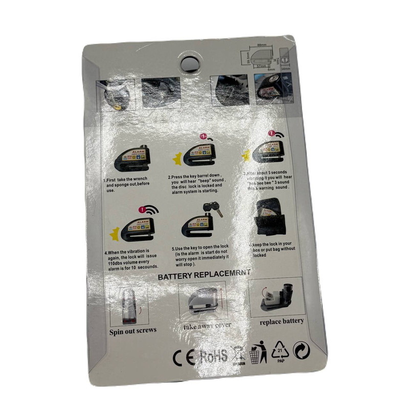 قفل دیسکی آژیردار قفلی است که روی دیسک ترمز موتورسیکلت یا خودرو نصب میشود و با تشخیص حرکت یا ضربه، آژیر با صدای بلند خود را فعال میکند تا سارق را منصرف کند و توجه اطرافیان را جلب کند. این قفلها علاوه بر مکانیزم قفل مکانیکی، دارای حسگرهای حرکتی هستند و با بند یادآور به مالک کمک میکنند تا قفل را قبل از حرکت باز کند.