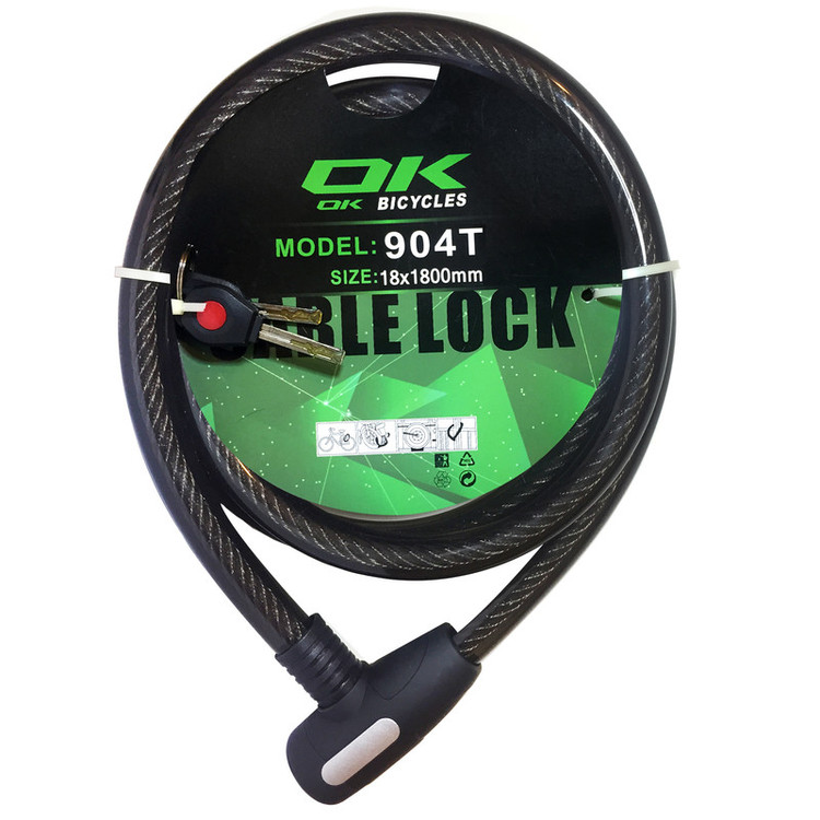 کابل فولادی و بسیار محکم جنس بدنه پی وی سی و پلاستیک براق ضخامت 18 میلیمتر طول 180 سانتیمتر مناسب برای دوچرخه، موتور، کالسکه و ... انعطاف پذیر استفاده راحت کلید های کامپیوتری دارای کلید با چراغ داخلی